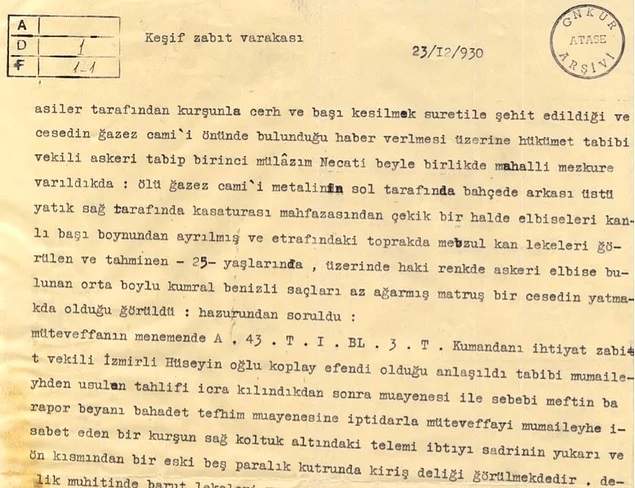 Meydanda toplanan ahaliyle birlikte, her geçen dakika kargaşa büyüdü. 43. Piyade Alay Komutanlığı emrindeki Asteğmen Kubilay, olaya müdahale için emrindeki askerlerle bölgeye ulaştı. Fakat çatışma sırasında yaralanan Kubilay Asteğmen, güçlükle sığındığı Gazez Camiinin bahçesinde isyancılar tarafından yakalandı ve başı kesilerek şehit edildi.