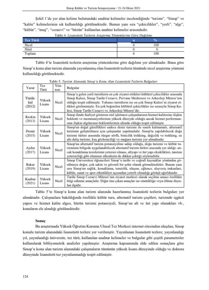 SİNOP TURİZMİNE YÖNELİK LİSANSÜSTÜ TEZLERİN BİBLİYOMETRİK ANALİZİ